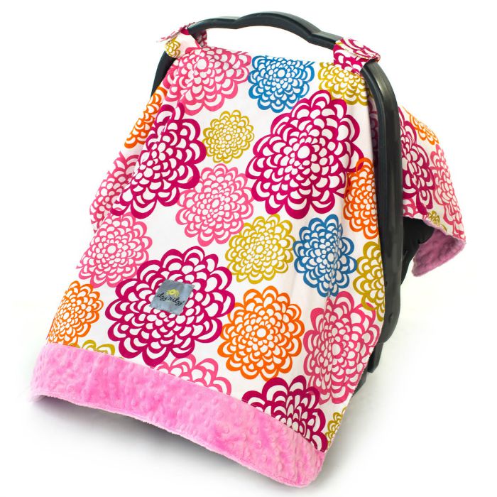 Cozy Happens – Infant Carseat Canopy – Fresh Bloom & Pink Minky