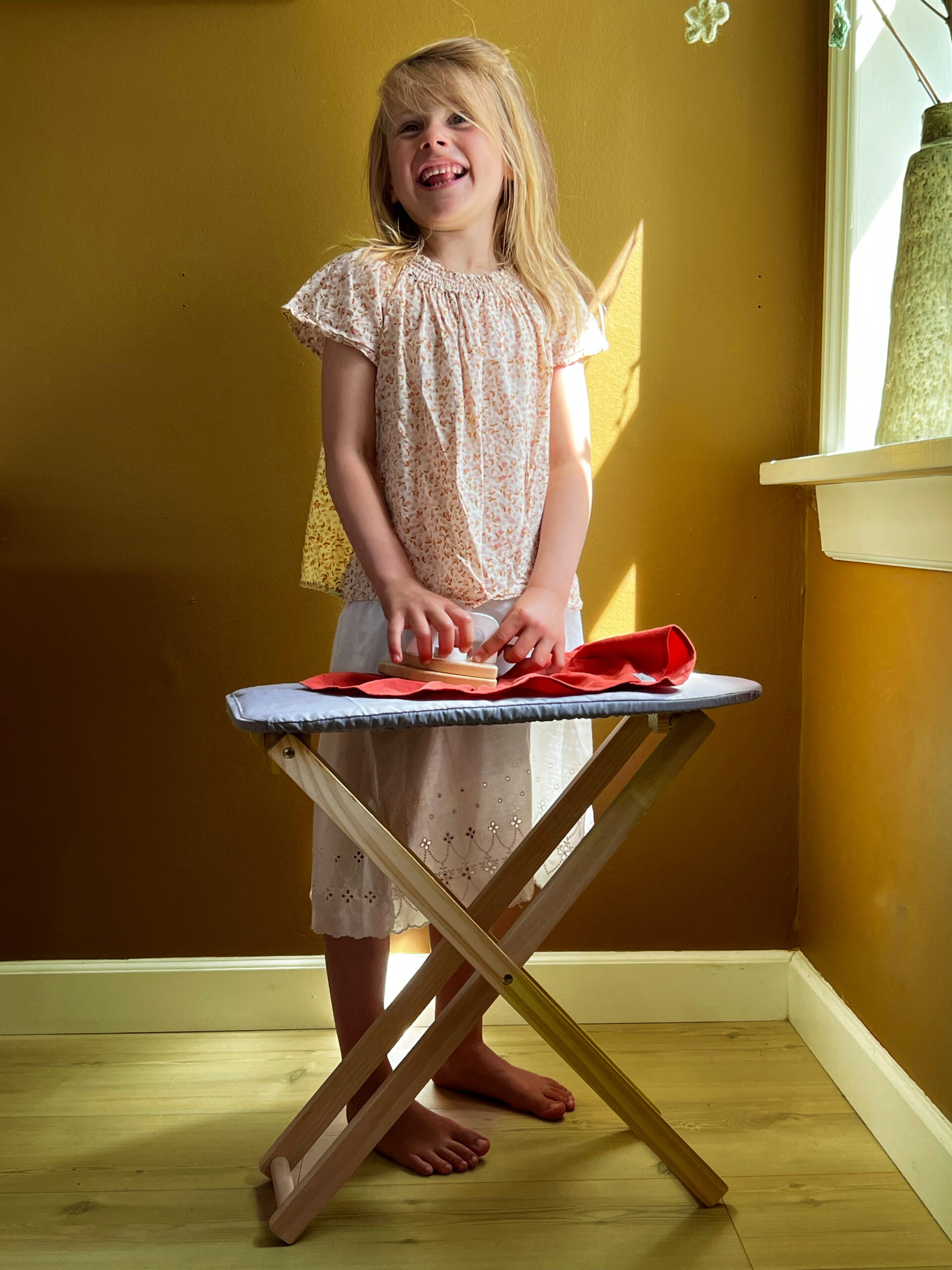 Once your doll’s clothes have been washed and dried, then of course they need ironing. This lovely MAMAMEMO® ironing board is perfect for the job.
