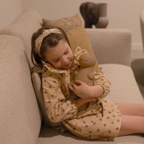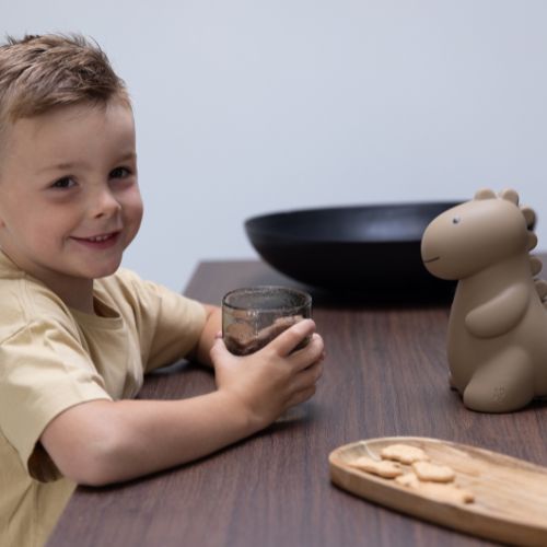 Jéroom is made entirely of high-quality silicone – completely safe for little ones and pleasantly soft to the touch. With its natural tones, this sweet dinosaur also makes a charming eye-catcher in any nursery or bedroom.