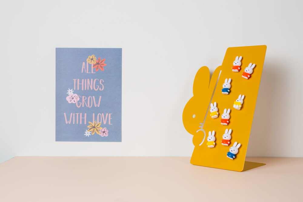 This beautiful magnetic board shows that Miffy is very stylish with a playful touch. A very nice accessory to present in the children’s room, living room or in the kitchen.