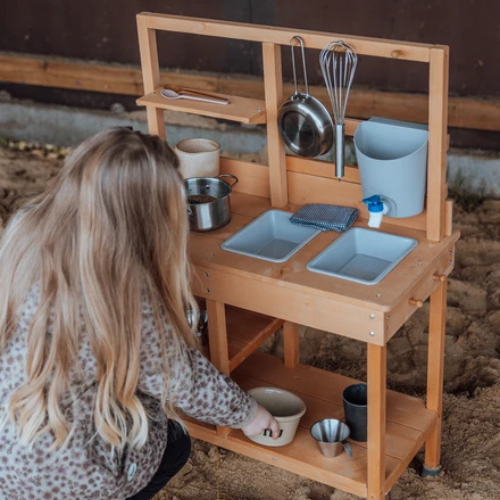 Designed for outdoor fun, this mud kitchen offers a durable and safe space for children to explore, create, and socialize. Whether they’re cooking up a storm, serving up imaginary treats, or simply having fun with water and mud, this mud kitchen provides hours of entertainment and sensory exploration.