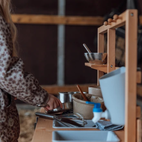 Introduce little ones to endless outdoor fun with this beautifully crafted wooden mud kitchen! Perfect for encouraging imaginative play, this mud kitchen features a sturdy wooden structure with all the essentials to inspire creative cooking adventures.