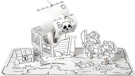 You will have great fun building and decorating the pirate ships, treasure chest and the included pirate dolls! Have your pirates hunt for treasures according to the included treasure map and fill their chests with loot.