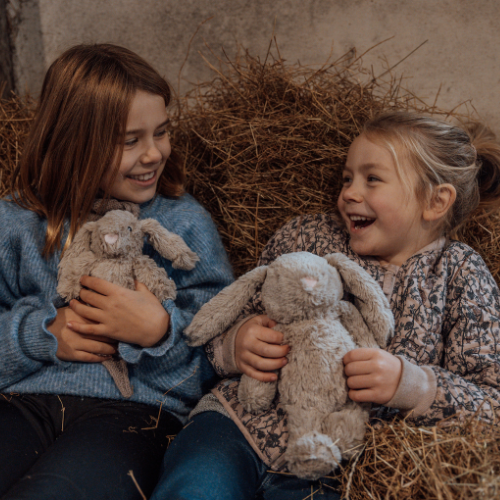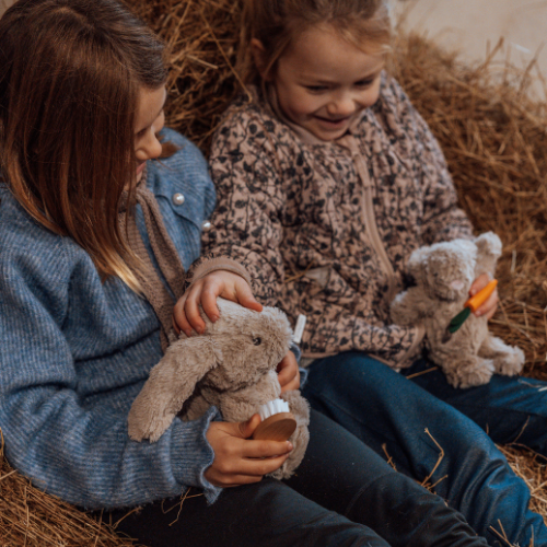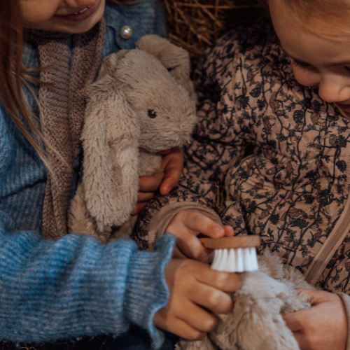 With their incredibly soft fur in a warm nordic sandy color, black eyes, and a sweet rose-colored nose, these two little buddies form an enchanting duo that is sure to captivate the hearts of little ones everywhere.