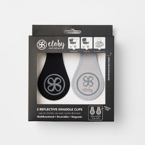 Made from durable, reversible canvas and equipped with two strong magnets, they’re as versatile as they are practical. Use them to secure UV blankets, swaddles, toys, pacifiers or small bags — or clip them onto your jacket, baby carrier or bike for extra visibility at night.