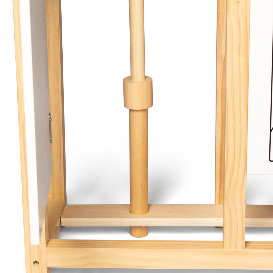 There are also 2 little blackboards where you could write the names of the horses. You can then hang the boards on the little wooden knobs above the doors of the horse stable. Other knobs on the side of the stable can be used for hanging other accessories, for example, the bridle etc.