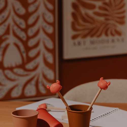 This clever little crab has swapped the shoreline for your pencil case. With his bright coral look and playful claws, Theo turns writing, doodling and colouring feel like a seaside adventure.
