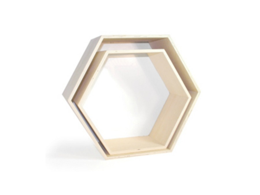 Natural Plus Wooden Hexagon Wallmount – Set of 2 – White
