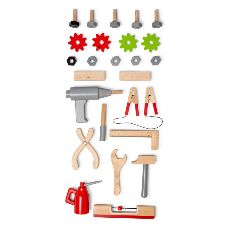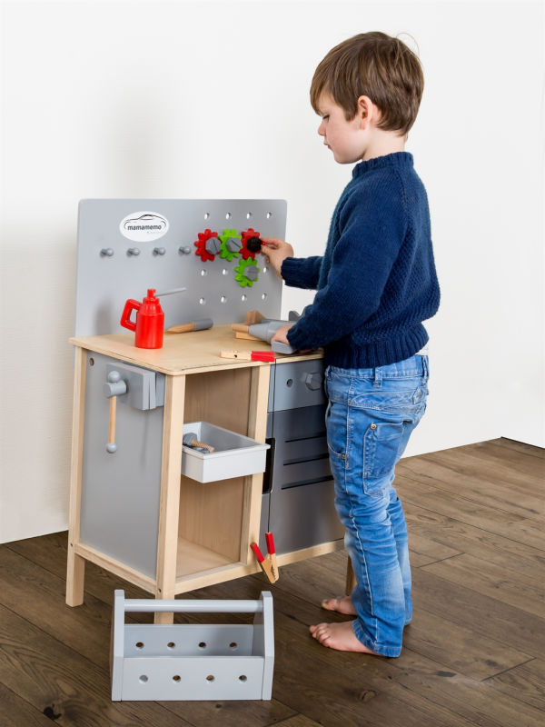 Whether the children are pretending they are carpenters or car mechanics this fantastic wooden workbench will bring pleasure to all kids and we guarantee hours of fun for little builders with big ideas and car mechanics repairing cars.