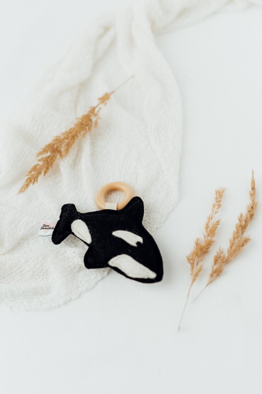 Die Babyrasseln & Quietscher von Deine Sommerliebe sind einfach niedlich und ideal für die ersten Greifversuche deines Babys geeignet. Auf dem Holzring lässt sich ausserdem bedenkenlos herum kauen.