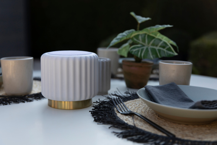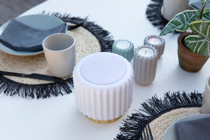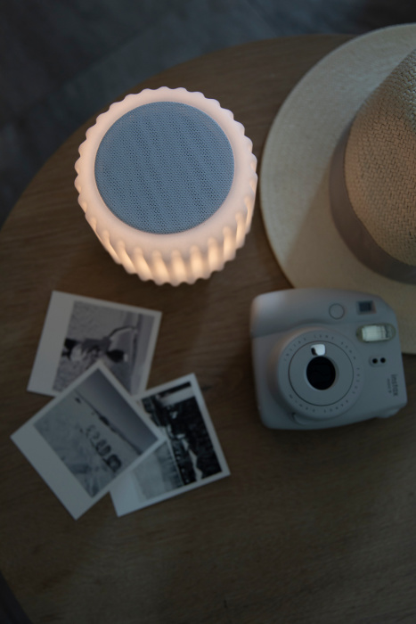 Für den Innen- und Aussenbereich geeignet und auch in verschiedenen anderen stilvollen Farben erhältlich: Strawberry, Pistachio und Blueberry. Es gibt auch Lautsprecher ohne Licht in Terra, Eucalyptus, Black und Grey. Also für jeden etwas dabei!