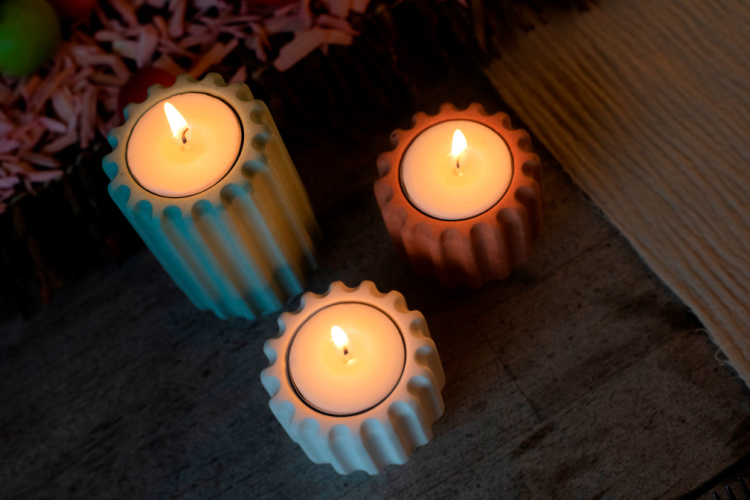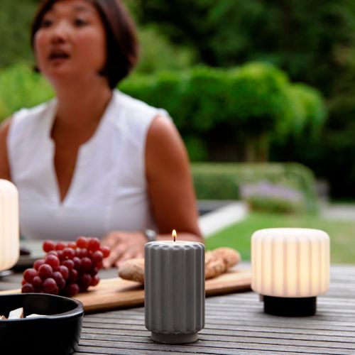 Die Teelichter sind in grau, terra, weiss, clay und eucalyptus erhältlich.