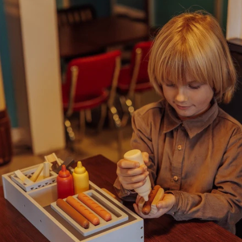 Dank der stabilen Holzkonstruktion hält der Stand auch wildem Spiel stand – und die detailreichen Zubehörteile fördern nicht nur die Kreativität, sondern auch das soziale Miteinander. Ob Hotdogs grillen, Pommes servieren oder Getränke ausschenken – hier ist stundenlanger Spielspass garantiert!
