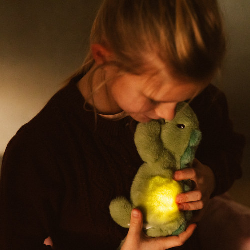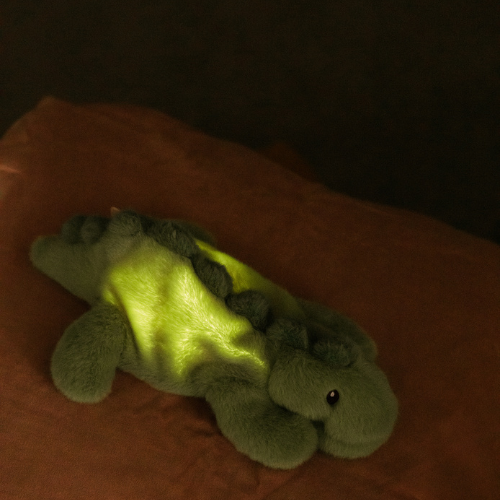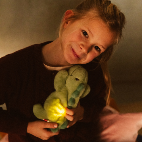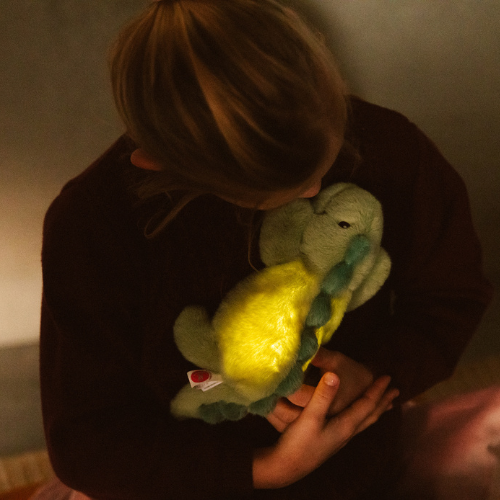 Bereit für ein fantastisches Abenteuer mit Jéroom, dem niedlichen, aber mutigen kleinen Dino? Lerne deinen neuen Schlafbegleiter kennen: ein weiches Plüsch-Nachtlicht in Form deines Lieblingsdinosauriers. Sein sanftes grünes Leuchten sorgt für eine beruhigende Atmosphäre und lädt vor dem Einschlafen zu verträumten Abenteuern ein. Kuschel dich an Jéroom und lass sein beruhigendes Licht dein Kind in eine Welt voller Dinosaurier und süsser Träume entführen.