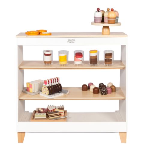 Mit dem Ladenregal können Kinder ihren eigenen Laden einrichten, in dem sie alles von Spielnahrung bis hin zu Spielzeug verkaufen können. Das Plexiglasfenster sorgt für einen realistischen Touch und ermöglicht den kleinen Ladenbesitzern eine professionelle Präsentation ihrer Waren. Die robuste Konstruktion und das zeitlose Design machen das Ladenregal nicht nur zu einem lustigen Spielzeug, sondern auch zu einer schönen Ergänzung für jedes Kinderzimmer oder Spielzimmer.