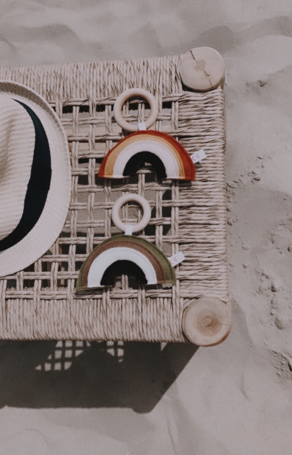 Die Babyrasseln & Quietscher von Deine Sommerliebe sind einfach niedlich und ideal für die ersten Greifversuche deines Babys geeignet. Auf dem Holzring lässt sich ausserdem bedenkenlos herum kauen.