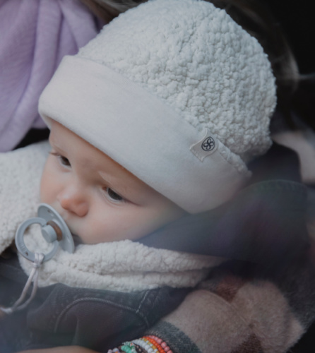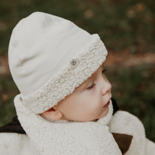 Halte dein Kleines an kalten Wintertagen warm und kuschelig mit dieser niedlichen, wendbaren Teddy-Mütze von Cloby. Eine Seite besteht aus superweicher Bio-Baumwolle, die andere aus recyceltem Polyester-Teddy – so erhältst du die perfekte Kombination aus Wärme, Komfort und Nachhaltigkeit.