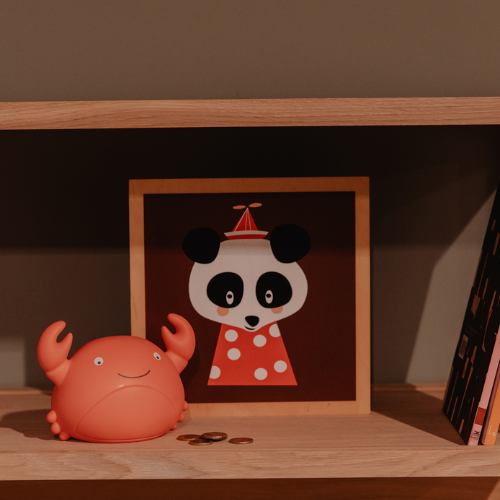 Mit seinem leuchtenden Korallenton und seinen verspielten Scheren verwandelt Theo jede Münze in eine Muschel aus einer geheimen Unterwasserwelt. Einfach durch die Öffnung auf seinem Rücken einwerfen und das Sparabenteuer kann beginnen!