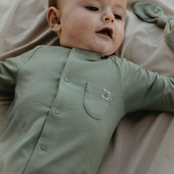 Der wunderbare Stoff besteht aus einer besonderen Mischung aus zertifizierter Bio-Baumwolle, Bambus und Elasthan. Der Overall bietet eine bequeme Passform und verfügt über durchgehende Knöpfe, die das An- und Ausziehen sowie das Wickeln deines Babys kinderleicht machen. Der superweiche, geschmeidige Stoff ist perfekt für Tag und Nacht – der ideale erste Anzug für dein Baby!