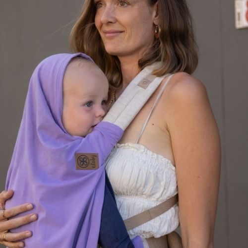Tragehilfe-Abdeckung – Mit den Druckknöpfen befestigst du die Decke an den Schulterriemen deiner Tragehilfe, sodass die Arme, Beine und eventuell der Kopf deines Babys vor Sonne und Wind geschützt sind.